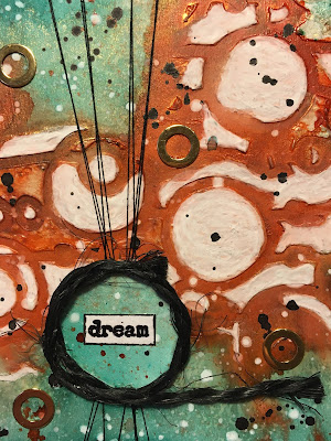 SvarSlettWhat a super creation, I love how you continued with it over days, some time things happen and it does us good to step away then return another day. Lovely pop of shimmer amongst those rusty patina hues. The hug of the circle and thread is extremely effective. Lovely piece of artwork, many thanks for sharing over @ Creative Artiste. Creative wishes Tracey (DT)